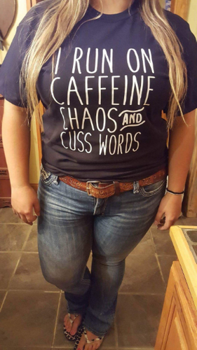 I Run On Caffeine Chaos and Cuss Words Black Tee
