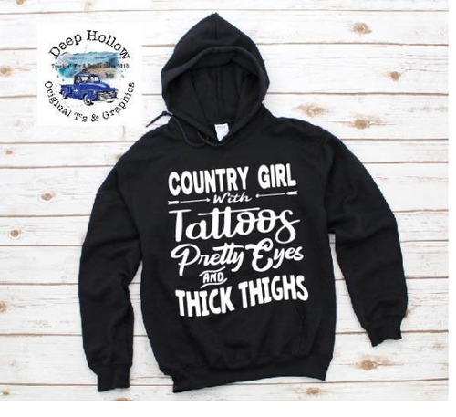Country Girl With Tattoos Pretty Eyes Thick Thighs Fleece Hoodie